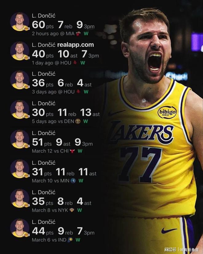 在最近這8場比賽裏,也就是東契奇被未婚妻提出分手,還被剝奪了撫養權之後,那狀態簡直就像開了掛一樣,完全暴走了。據詳細統計,在這8場比賽裏,東契奇場均能砍下40.9分,摘下8.9個籃板,送出7.4次助攻,場均蓋帽加上搶斷能達到3.3次,真實命中率更是高達66%。而湖人隊呢,在這8場比賽裏也是一路高歌猛進,取得了8勝0負的傲人戰績。場均40多分的準三雙數據,這合理嗎?這簡直讓人驚掉下巴啊!