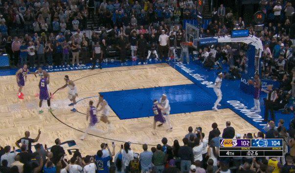 5.5秒領先2分握有球權,魔術贏球形勢一片大好,但他們出現了關鍵的邊線球失誤,班凱羅被詹姆斯切球,裁判將球權判給湖人。魔術選擇用最後一次暫停進行挑戰,但裁判經過漫長的錄像回放後依然無法找到改判證據,湖人獲得了4.7秒絕殺的機會。