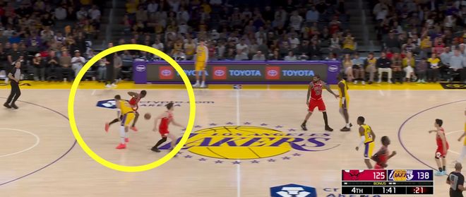 短短3分鍾時間,湖人打了公牛一波14-9,這14分每一分都跟東契奇直接相關,這就是頂級持球大核的比賽統治力。
