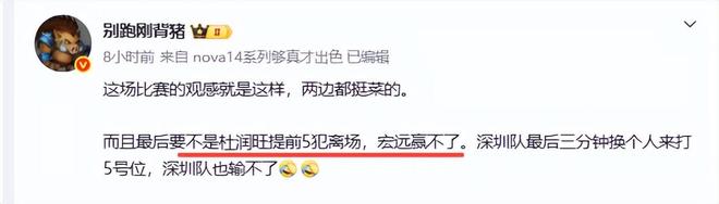 這兩個老寒腿實際表現很一般,張昊嘉前三節0分。杜潤旺前三節也是0分,全場三分4投1中,還5次犯規。更要命的是,讀秒時刻他對史蜜斯三分犯規,此時廣東隊領先4分,若是史蜜斯三罰三中,深圳隊還有機會逆轉廣東隊,但史密斯隻是三罰一中,幸運讓廣東隊偷走勝利。可以說贏得很醜陋,也有人稱是醜勝。