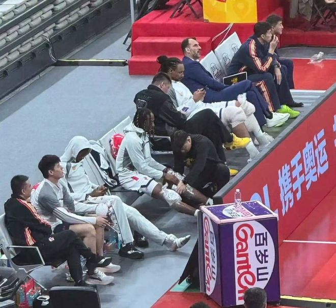 賽後同樣也在冰敷的還有麥考爾和薩林傑,麥考爾雙膝纏滿冰袋,薩林傑膝蓋和腳踝也都綁上了冰袋,麥考爾這一場比賽發揮挺掙紮的,能明顯看出啟動速度沒有上賽季快,期間多次想靠變向突破過掉約翰遜和史密斯,但效果都不理想。