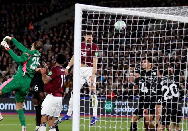 但僅僅過了4分鍾西漢姆聯隊就扳平了比分,右側角球開出後,多納魯馬沒有碰到皮球,後點的馬夫羅帕諾斯高高躍起頭球建功,幫助鐵錘幫將比分追至1平,半場結束前,曼城前場搶斷後迅速形成了反擊,哈蘭德禁區內倒三角回做,但塞梅尼奧的射門擦著立柱出了底線。