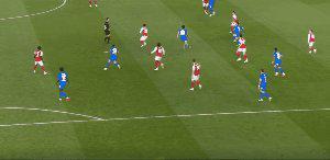 第36分鍾,埃澤背身得球,轉身抽射,打入精彩進球,阿森納1比0領先。