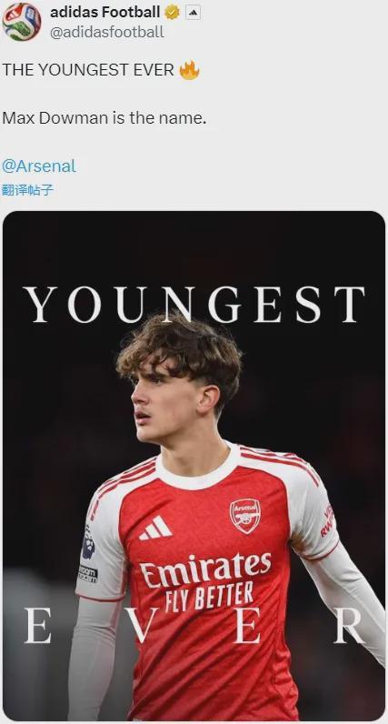 Opta統計,16歲73天的道曼成為了英超曆史上最年輕的進球者,當然同時也是阿森納隊史最年輕的英超進球者!